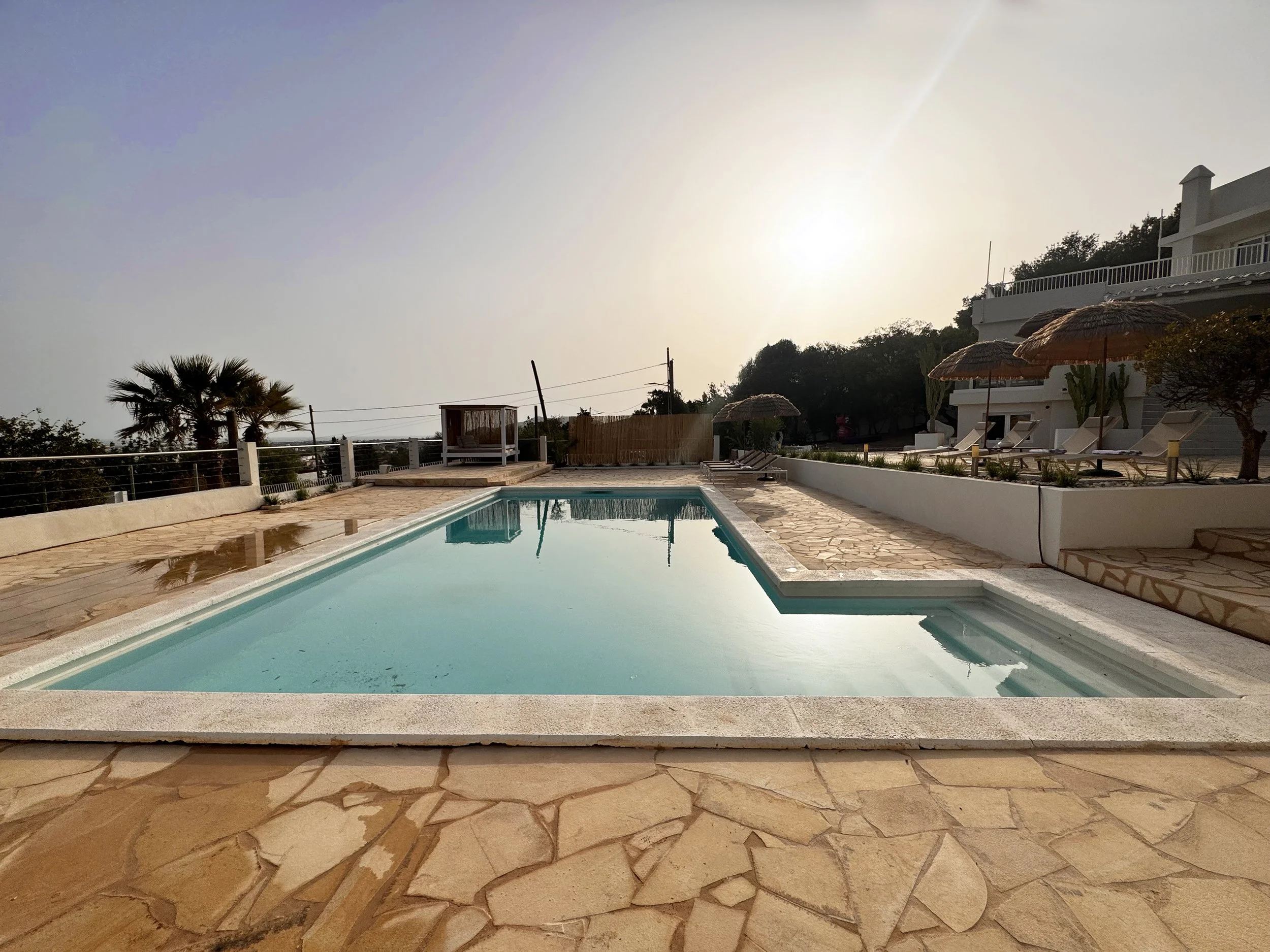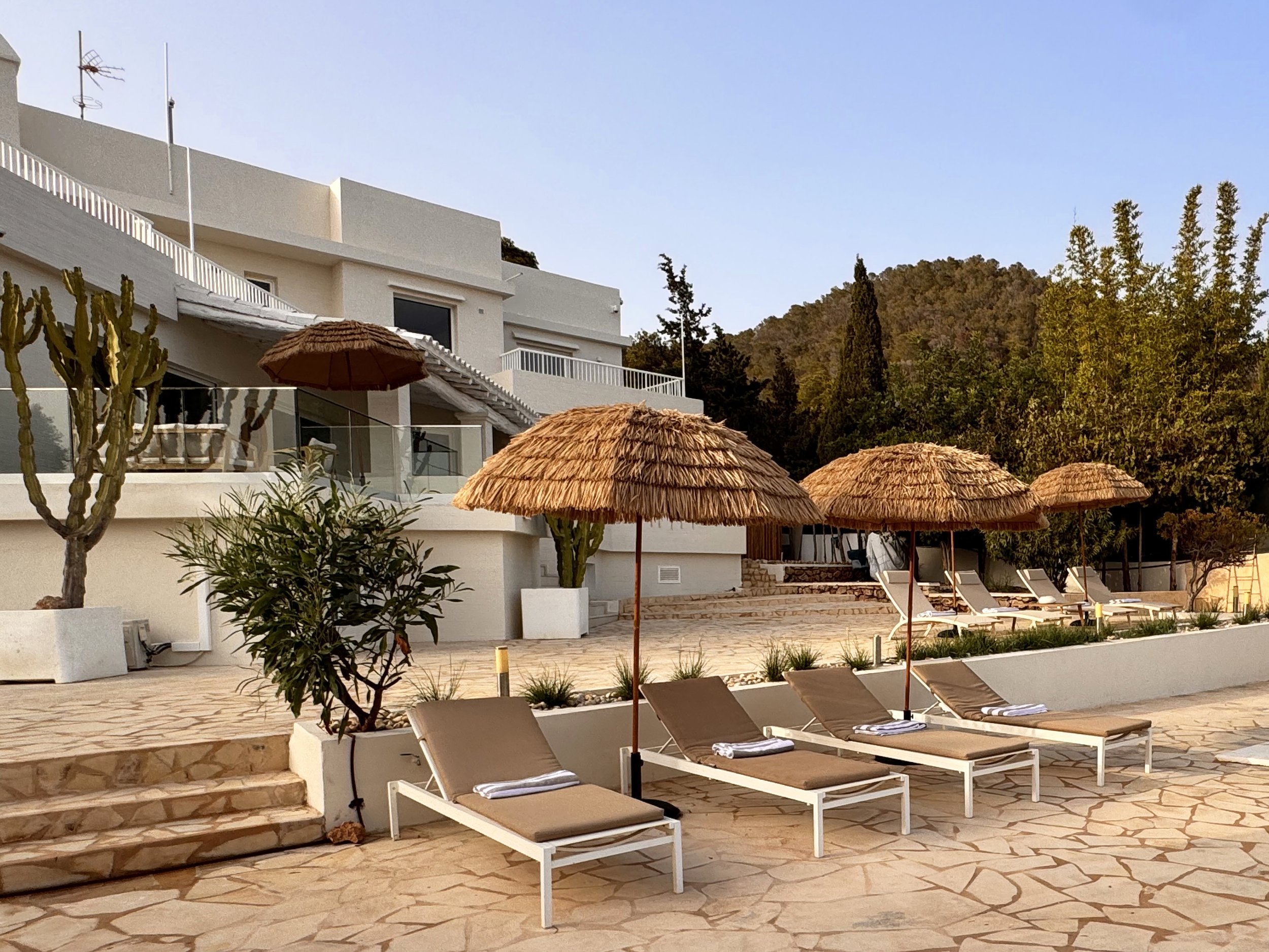 This amazing six bedroom, six bathroom villas been completely reformed in 2025. It’s perched high up on one of the hills just outside Ibiza town with stunning views down to the coast and the beautiful Mediterranean sea.